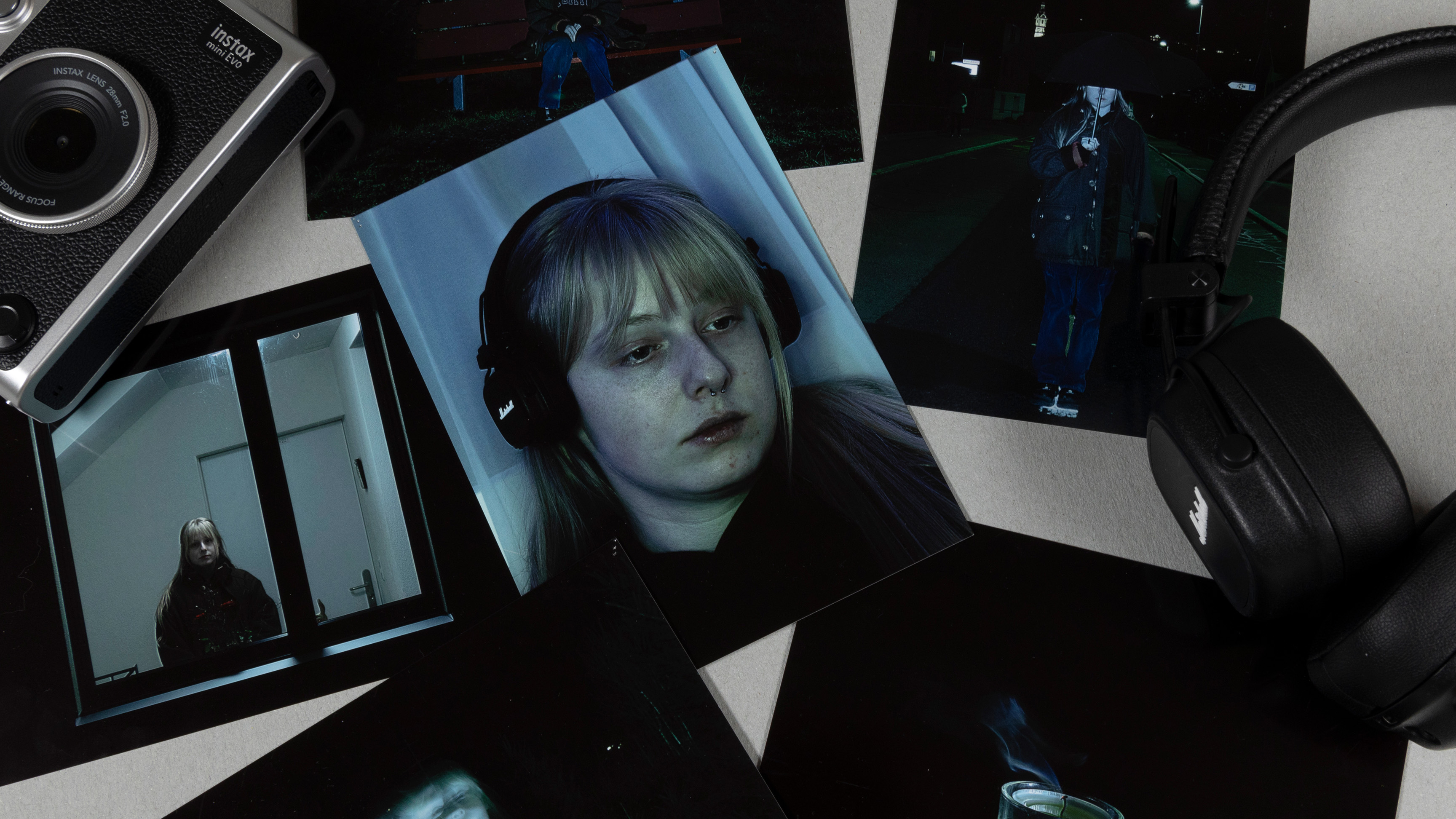 Emotional Photography On the theme of the disappearance of motivation, I photographed six images portraying exhaustion, fatigue, and melancholy. This project allowed me to delve deeper into night photography, with the photographs styled to resemble "cinematic scenes", For some images, I chose a frontal perspective to create an intense and direct impact on the viewer. I included elements like an umbrella or a solitary bench in the compositions to symbolically enhance the emotions.