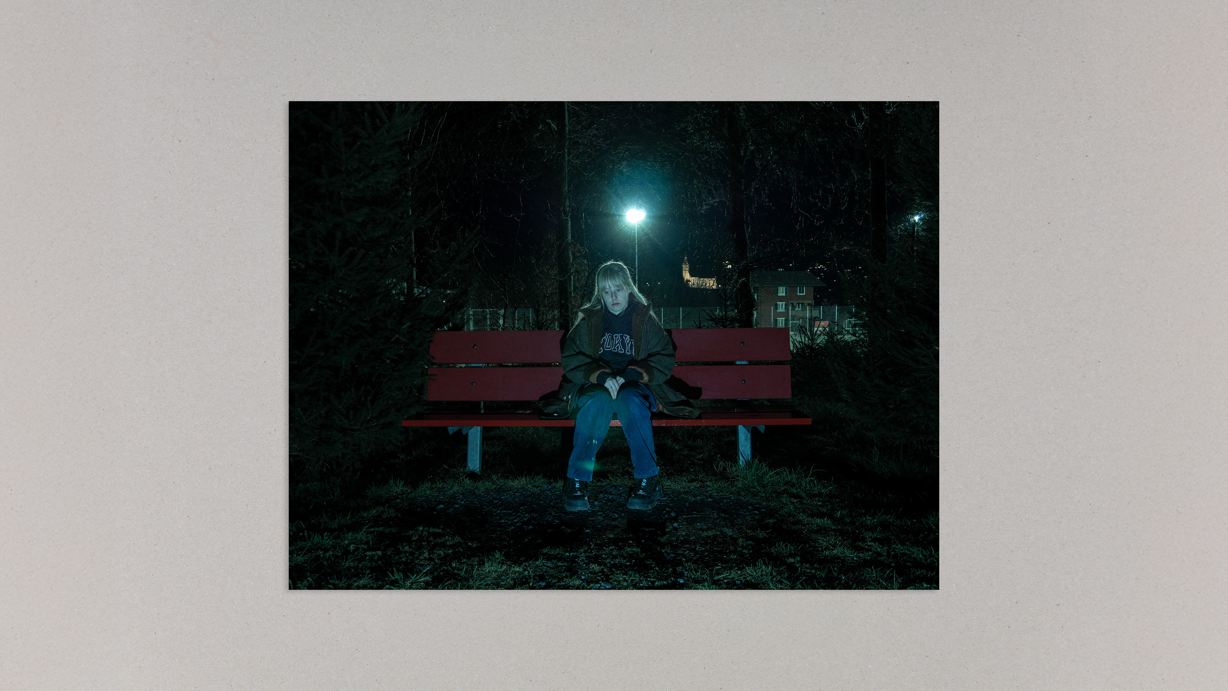 Emotionale Fotografie Zum Verschwinden von Motivation fotografierte ich sechs Bilder, die Erschöpfung, Müdigkeit und Melancholie darstellen. Das Fotografieren im Dunkeln nahm ich bei dieser Arbeit näher unter die Lupe und ich liess die Fotografien als «filmische Szenen» wirken. Dazu wählte ich bei einigen Bildern die Frontalperspektive, um eine intensive und direkte Wirkung auf den Betrachter zu erzeugen. Ich fügte Elemente wie ein Regenschirm oder eine alleinstehende Bank zum Motiv hinzu, um symbolisch die Gefühle zu verstärken.
